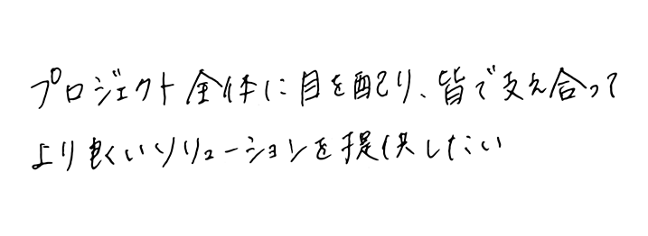 仕事の責任の重さを実感プロジェクト全体に目を配って働きかけたい